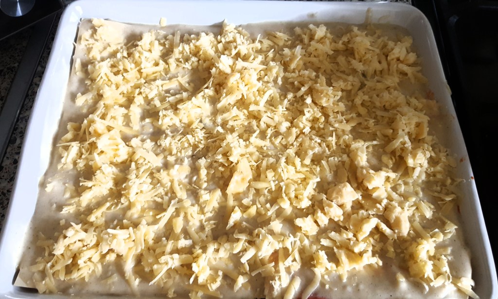 For the lasagne, put one third of the meat sauce in the base of a 2.3 litre/4 pint shallow ovenproof dish. Spoon one third of the white sauce on top. Arrange one layer of lasagne sheets on top. Season. Spoon half of the remaining meat sauce on top and then half of the white sauce. Put another layer of lasagne sheets on top, then the remaining meat sauce, lasagne sheets and remaining white sauce. Sprinkle over the cheddar cheese.